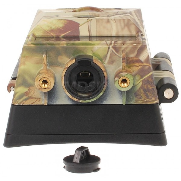 Rewelacyjna fotopułapka idealnie nadająca się do obserwacji zwierząt np. w lesie, jak również monitorowania domów, domków letniskowych, magazynów, itp. Zastosowany reflektor podczerwieni umożliwia rejestrację także w nocy. Kamera wyzwalana jest czujnikiem PIR o zasięgu do 25 m, po czym w zależności od ustawień wykonuje jedno bądź kilka zdjęć lub nagrywa sekwencję video oraz audio. Zapis wykonywany jest na karcie SD (brak karty w zestawie).