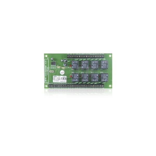 Ekspander we/wy, osiem linii wejściowych typu NO/NC oraz osiem linii wyjść przekaźnikowych, dedykowany do współpracy z kontrolerami dostępu serii PRxx2 jako moduł sterujący windami.