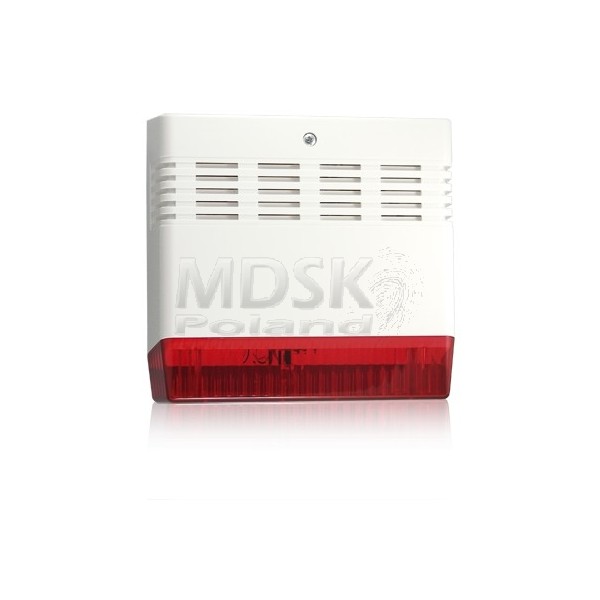 Zasilanie 12V DC, sygnalizacja akustyczna 110dB/1m, sygnalizacja optyczna 5W/2Hz, możliwość zasilania z wewnętrznego akumulatora 12V/1.2Ah, układ czasowy ograniczający maksymalny czas sygnalizacji dźwiękowej.