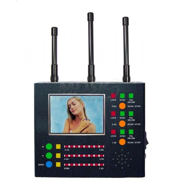 Nowoczesne urządzenie do wykrywania kamer bezprzewodowych w trzech pasmach 1.2GHz, 2.4GHz, 5.8GHz. Wykrywa wszystkie kamery bezprzewodowe, miniaturowe kamery bezprzewodowe oraz kamery bezprzewodowych CCTV. Obsługuje standard PAL, NTSC, SECAM.